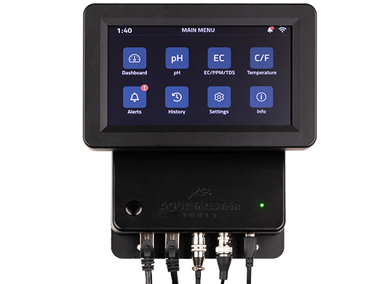 El C800 Pro es un controlador inteligente y flexible diseñado para medir y ajustar automáticamente los niveles de pH y CE en el tanque de riego por lotes de sistemas hidropónicos. Está específicamente desarrollado para horticultura, hidroponía y sistemas de cultivo profesionales donde el control preciso de nutrientes es esencial. El C800 mide continuamente el pH, la EC, los ppm, los sólidos disueltos totales (TDS) y la temperatura, y dosifica automáticamente las cantidades establecidas por bomba cuando los valores se desvían del rango objetivo. El controlador cuenta con dos puertos de salida UTP independientes: Uno para conectar una sola bomba dosificadora de pH (para subir o bajar el pH) y Uno para conectar de 1 a 5 bombas dosificadoras de CE para la dosificación de nutrientes. Esta configuración modular permite que el C800 funcione como: Un controlador combinado de pH y CE, Un controlador de pH independiente, Un controlador de CE independiente. El sistema se puede operar a través de la intuitiva pantalla táctil a color, que muestra valores en tiempo real, el estado de las alarmas y datos históricos. Para mayor funcionalidad, el C800 se conecta a la aplicación gratuita Aqua Master Tools (iOS/Android), lo que le ofrece: La posibilidad de almacenar los programas de dosificación de nutrientes en la nube y reutilizarlos posteriormente, Notificaciones de alarma instantáneas directamente en su smartphone, Acceso a gráficos históricos y en tiempo real, Ajuste remoto de todas las configuraciones de dosificación, puntos de ajuste, alarmas y recordatorios de calibración, Gestión remota de varios dispositivos desde una sola aplicación. Tanto el controlador como la aplicación le permiten consultar hasta 12 meses de mediciones y alarmas históricas, lo que le proporciona una visión completa y un control total de su sistema en todo momento.
